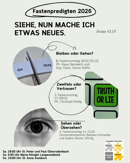 Zeiten, Termine und weitere Hinweise erhalten Sie im Pfarrbrief - hier entlang.