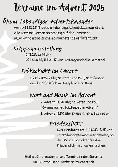 immer um 16.30 Uhr in St. Peter und Paul, Salmünster.