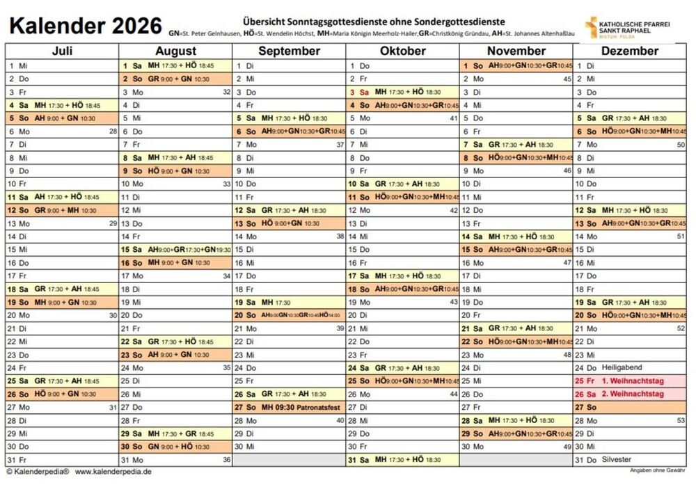 Zeiten, Termine und weitere Hinweise erhalten Sie im aktuellen Pfarrbrief - hier entlang.
