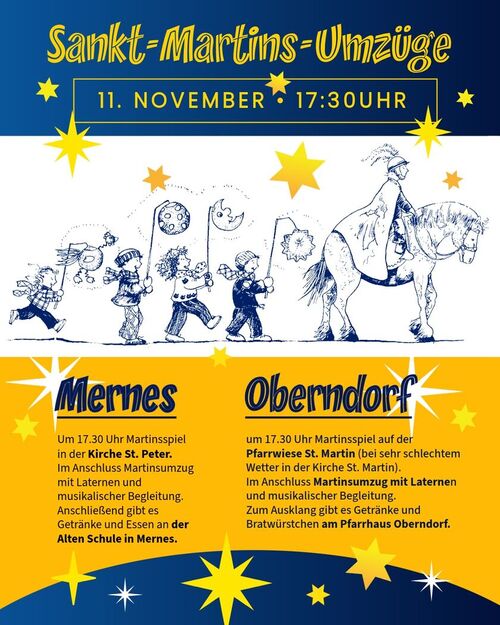 17.00 Uhr Ökum. St. Martinsgottesdienst mit anschl. Umzug von der ev. Kirche zur kath. Kirche (NR)